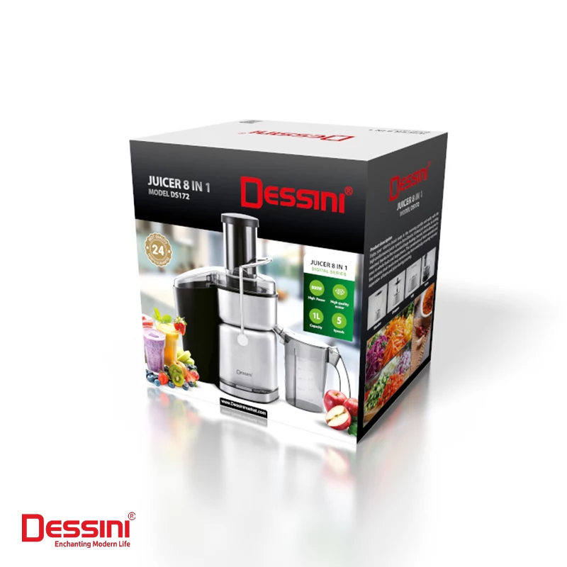 آبمیوه گیری هشت کاره دسینی مدل DS-172 با ویژگیهای متعدد و کارکردهای متنوع، یک انتخاب عالی برای خانوادهها و افرادی است که به دنبال دستگاهی با کارایی بالا و قیمت مناسب هستند. طراحی دستگاه به گونهای است که کار با آن راحت و آسان کرده و فیلترهای استیل ضدزنگ به شما این امکان را میدهند که آبمیوههایی با کیفیت بالا را نوش جان نمایید.